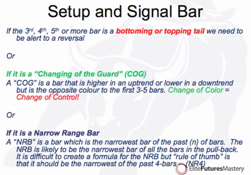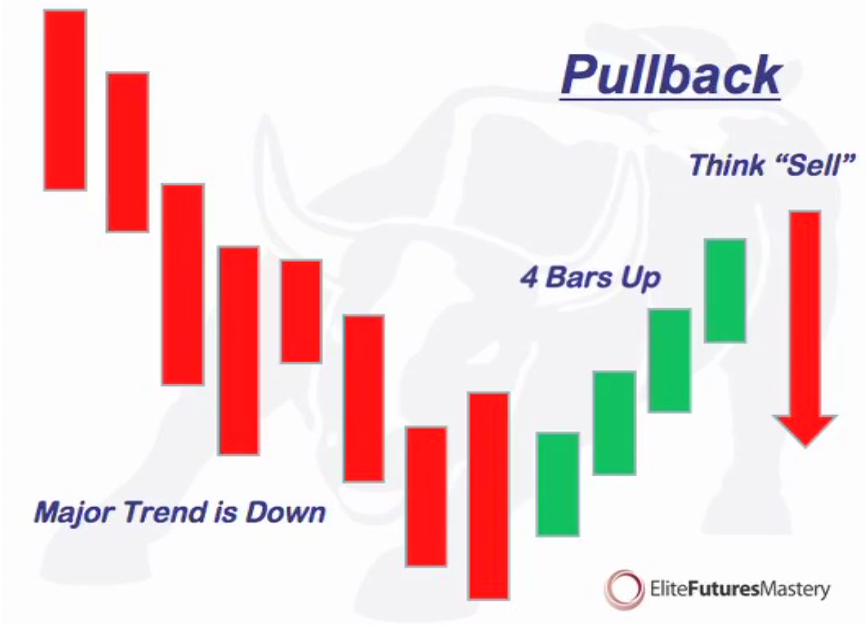 The SELL set up occurs when you see a 1) 3-5 bar, 2) Perfect or complex, 3) Pullback, 4) in an DOWNTREND