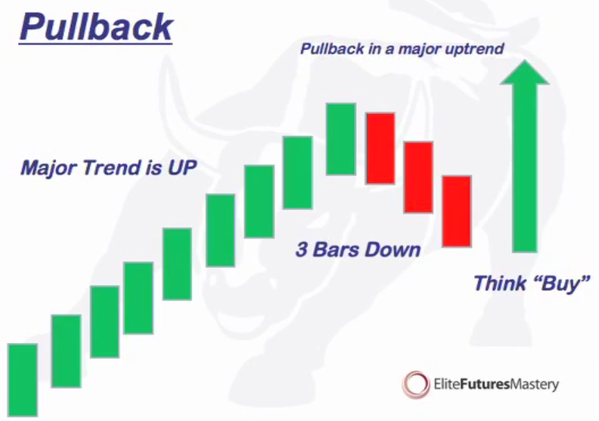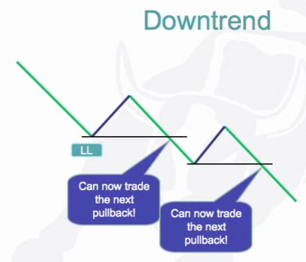 In an up-trend the pull-back should occur after a higher-high and in an down-trend after a lower low. After making a higher high the market must make a new low before the next high can be made or make a new high before the next low can be made.