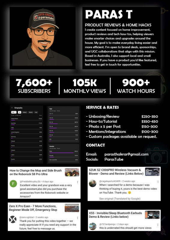 Want to put your product in front of an engaged audience? I create YouTube videos, short-form social media posts, and offer regular product mentions for brands I genuinely use and love. My content is honest, insightful, and designed to educate and entertain.